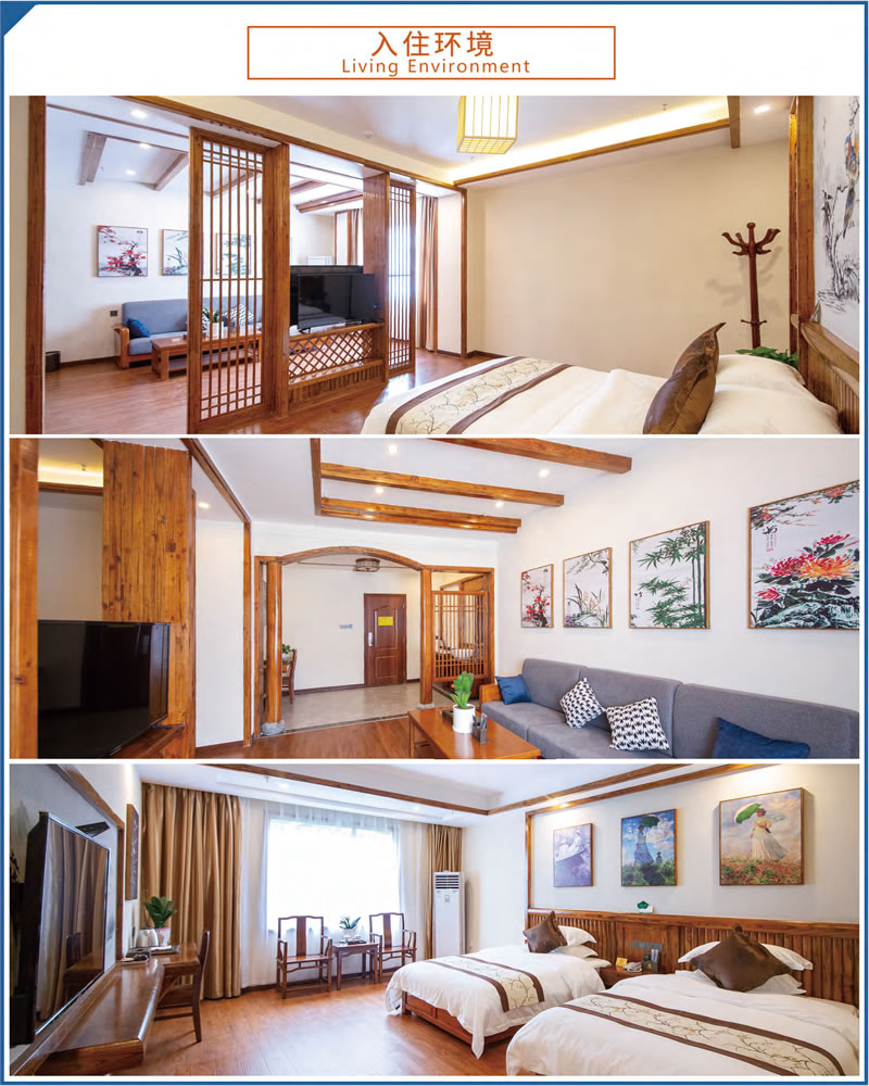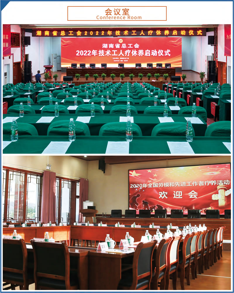 這里設(shè)施完備,環(huán)境優(yōu)美。占地70余畝,建筑面積23000余平方米,由多座湘西民族風(fēng)格的園林建筑群組成。院外依山傍水,院內(nèi)綠樹成蔭,環(huán)境優(yōu)美怡人,F(xiàn)有客房4棟,各類客房279間,中西餐廳可滿足500人同時(shí)就餐。大小多功能會(huì)議室、棋牌室、健身房、藍(lán)球場(chǎng)、羽毛球場(chǎng)等設(shè)施均有配備。