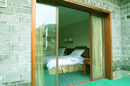 鳳凰江天旅游度假村位于湘西自治州鳳凰縣古城區(qū)內,東鄰虹橋路交通方便,南有清澈的沱江自西向東川流不息,東南角緊靠蜚聲海內外的風雨樓——虹橋,與風姿綽綽的吊腳樓群隔江相望,是鳳凰古城控制區(qū)內唯一按準四星級標準建造的、具有仿古建筑特色和現(xiàn)代化室內裝修的、集休閑、購物、度假、商務于一體的旅游度假村。 鳳凰江天旅游度假村主體酒店客房部均為三層仿古建筑,形成以別致的個性小花園為中心的主樓區(qū)和副樓區(qū),目前擁有各種客房110余間,分為:帶觀景陽臺、配備高檔液晶電腦、獨立寬帶上網(wǎng)的商務房,帶客廳、廚房和露臺花園的豪華套房,以及豪華標準房,所有客房提供免費寬帶接口。同時擁有可容納400人同時用餐的具有民族特色的大型餐廳,大、小會議室和近80個車位的停車場,商業(yè)走廊可讓您盡情享受各種民族特色的服飾與小吃,整個度假村與鳳凰古城融為一體,是您休閑度假、商務旅游的最佳場所,更是您與古城親密接觸的理想平臺。 |