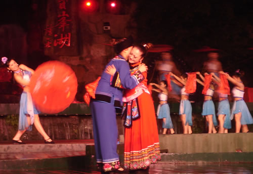 姑娘出嫁,為女人一生中最大的喜事,本應(yīng)充滿幸福、歡樂的氣氛。然而,舊時湘西、湘南、鄂西、川西(成都等地)、黔東(銅仁、凱里一帶)諸地,卻流行著一種與之完全相反情調(diào)的古老婚俗——“哭嫁”。也就是在姑娘“出閣”之前,不但新娘本人哭得很傷心,像淚人一般;而且,新娘的母親、姐妹以及姑媽、姨媽、舅媽及其他交往較多的女友,都要陪著新娘哭。湘西土家族哭嫁的風(fēng)俗尤為普遍、濃厚,不但哭嫁的時間較長(少則十來天,多達(dá)個把月),而且哭嫁歌也保存得古樸、完整。 姑娘出嫁為什么要哭?哪有那么多的東西可哭?這是一種蘊含甚為豐厚的人生禮俗,也是一種饒有興趣的婚俗事象。 俗話悅:“人不傷心不落淚!惫媚锍黾拗砸蓿且驗樵谂f式婚姻制度下,女孩(尤其是勞苦大眾家庭的女孩)總是作為犧牲品“拋”(賣)給夫家的,她們的身心受到極大傷害。因此,湘西等地的女孩在出嫁之前要哭泣,要呼號,哭嫁歌就是感情發(fā)泄的最好表現(xiàn)方式。 哭嫁的源起 哭嫁的風(fēng)俗,不知道起源于什么時候。戰(zhàn)國時期,趙國的公主嫁到燕國去作王后,她的母親趙太后在臨別時"持其踵,為之泣,祝曰,必勿使返。"大約就是后來長盛不衰的哭嫁風(fēng)俗的濫觴了。 這種風(fēng)俗,直至清末還盛行于四川農(nóng)村中,隨地區(qū)變化而大同小異。解放前,聽老人們說,早些時候,沒有嫁而不哭的人家。如果出現(xiàn)嫁而不哭的姑娘,也會被鄰里看作沒有教養(yǎng)的人,傳為笑柄;相傳有出嫁姑娘不哭而遭母親責(zé)打的事,這位母親當(dāng)然算得上是入流導(dǎo)演了。 舊時宣講故事中,有花轎臨門,父親強令哭《迎風(fēng)罵媒歌》的情節(jié),可知哭嫁是有歌詞的,帶有表演性質(zhì),原是用來渲染氣氛,以悲襯喜;不過,因為婚姻是包辦的,真哭真罵的也不會少。 抗日戰(zhàn)爭后期,風(fēng)氣較開,哭嫁之風(fēng)已不盛行,而老人們卻還在津津樂道,哭的方式是,從婚期前一個月的首日起,入黃昏,姑娘訴哭約一個小時,其聲嗚嗚。十天以后,她的母親加入"陪哭";又十天以后,她的祖母加入陪哭。這家沒有諸姑姊妹,人們說,如果有的話,也應(yīng)當(dāng)加入陪哭行列的。 哭嫁在川西叫"坐堂"。清代吉道人《味蔗軒隨筆·坐堂詞》云:"婚姻之禮,各省風(fēng)俗不同。然酌禮準(zhǔn)情,各省亦大同小異。凡男家娶婦先賦之詩,謂之'催妝';女家親串頌女之詞,謂之'坐堂'。坐堂者,女當(dāng)喜期將近之先數(shù)夕,其諸姑伯姊,置酒為女祖餞,各述吉祥之詞,以為頌美,女則申己之意以答。女左右更有少女,則隨而嫻習(xí)者也。其詞要多鄙俚,然有音韻凄清,風(fēng)格遒勁,如古歌古謠者。羅江明府蔡,微服巡查鄉(xiāng)里,一日行至某處,值有女子歸,諸娣姒咸以諛詞頌女,女申意以答。忽風(fēng)吹句入耳,詞曰:'鳳凰落在桌子上,哪個女兒肯離娘'。一字一轉(zhuǎn),音韻凄其,誰謂天籟之鳴,不在愚夫愚婦耶!"云云。吉道人姓周名際唐,成都人。吉道人記得明明白白,可惜他只記了一句哭嫁詞,難窺全貌。好在舊時坊間叢刻中有《訓(xùn)女哭嫁》一種,可見一斑。這本小書的目錄有《閨聲哭》、《娘訓(xùn)女》、《嫂哭妹》、《哭爹媽》、《哭哥嫂》、《花轎到屋哭》、《哭叔爺》、《哭兄弟》、《哭外公外婆》、《哭舅爺》、《拜香火哭》等等,編次有點凌亂,似乎隨手所記,未經(jīng)文人之手。遙想《詩》十五國風(fēng)未刪之時,大約也不過如此吧! 閨聲哭 娘聽后園鳥雀驚,要聽房中女兒聲。 我娘當(dāng)門苦葛藤,手攀苦葛訴苦情。 我娘苦情苦過了,女兒苦情才起根。 ............ 桔子開花葉子青,陽雀開聲我開聲。 新打銅盆才裝水,新打剪刀兩面青。 娘不開口我開口,娘不開聲我開聲。 當(dāng)門一根木蓮樹,目連樹上掛卷經(jīng)。 一本經(jīng)書背完了,未見我娘來開聲。 虧了我娘睡得穩(wěn),爹媽眼淚貴如金。 哭爹媽 月亮彎彎照華堂,女兒開言叫爹娘。 父母養(yǎng)兒空指望,如似南柯夢一場。 一尺五寸把兒養(yǎng),移干就濕苦非常。 ............ 勞心費力成虛恍,枉自爹娘苦一場。 哭兄弟 黑漆茶盤烏木頭,姐姐離娘弟不留。 留到姐姐吃你飯,留到姐姐穿你衣。 兄弟當(dāng)家掙家忙,嫁了姐姐買地方。 上頭買齊潼川府,下頭買齊遂寧鄉(xiāng)。 ............ 這個本子所記是川北的歌詞,以前所見的是川南,吉道人所記的是川西,川東,大約也不會大異的。遺憾的是,該書所記哭嫁詞雖有"只怨媒人莫良心"等語,卻沒有列出"罵媒專目,大約是怕媒人太難堪了吧! 其實,罵媒是哭嫁中必不可少的節(jié)目,也是最具反抗色彩的哭嫁歌詞。舊社會,婦女無婚姻自由可言,由于"三從四德"的束縛,平時對于自己的終身大事幾乎不能置一詞,全由媒人和父母擺布;因此,這登花轎之前的"罵媒",便是難得的發(fā)泄機會。這早已反映在戲曲和民間說唱等藝術(shù)之中。 以前,川劇《柳蔭記》有《英臺罵媒》一折,英臺罵媒人,言詞激烈,聲色俱厲,充分表現(xiàn)了祝英臺剛烈的性格和反封建精神。她罵道:"提媒婆,更恨她,胡言亂語嘴喳喳......唯愿你,房屋遭火化,田園水推沙。"但這場戲現(xiàn)在卻被刪掉了,五六十年代還有的,全國第一屆戲曲會演的川劇《柳蔭記》也有這一折,是陳書舫演的祝英臺,得了一等獎。現(xiàn)在城里人大約以為媒婆不必罵了,但偏遠(yuǎn)地區(qū),媒婆似乎還在肆虐。不過,據(jù)