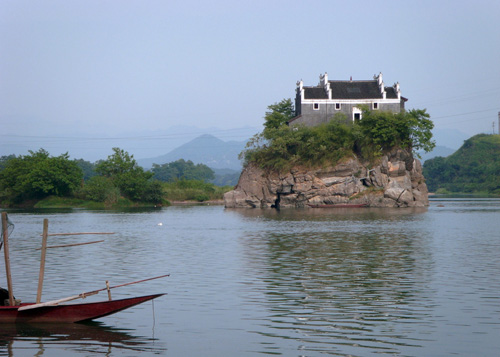 香零山為天然石磯結(jié)構,地處中流,隨瀟水水勢而展現(xiàn)不同的風光,勢浩蕩則如汪洋中之一小舟,水勢弱小則島亭昭然挺立。若雨后日出,煙鎖山腳,霧雨朦朧,往來舟楫,若隱若現(xiàn),給人一種煙波浩渺的意境,因而有“香零煙雨”之稱,為永州八景之一。