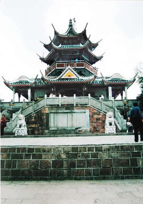 六奇閣是一幢塔狀的樓臺,座落在黃石寨的最高處。它是自然景觀群體唯一的一處人文景觀,突兀在石砌的方臺基上。湘潭大學教授羊春秋老先生于此撰聯曰:名動全球,到此真堪三擊節(jié);勢拔五岳,歸來不用再看山。