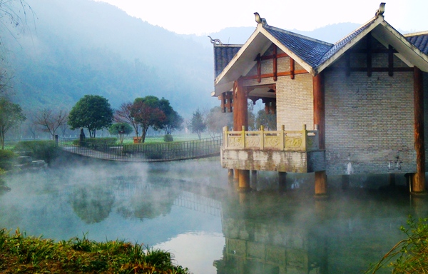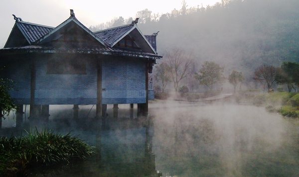 “泉源沸涌,浩氣云浮。”據(jù)了解,黃龍洞生態(tài)廣場(chǎng)的水源出自于洞內(nèi)的地下河,水溫常年保持在16攝氏度左右。當(dāng)從洞內(nèi)流淌出來(lái)的溫暖水流與洞外的低溫空氣相遇之后,頓時(shí)形成沸騰的水汽,從而形成“浩氣”景觀。