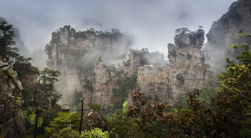 楊家界風(fēng)景區(qū)山明水秀,風(fēng)光如畫。香芷溪峰高天遠(yuǎn),澗深水清,斜陽古道,鳥叫蟬鳴,似世外桃源;龍泉峽絕壁羅列,是天然的屏障,宛若壯觀的古城墻;百猴谷是獼猴和白鷺的家園,成隊(duì)的獼猴出沒于懸崖溝谷之間,成群的白鷺棲息于蒼枝綠葉之中。楊家界還有被人嘆為“神州第一藤”的“絕壁藤王”。