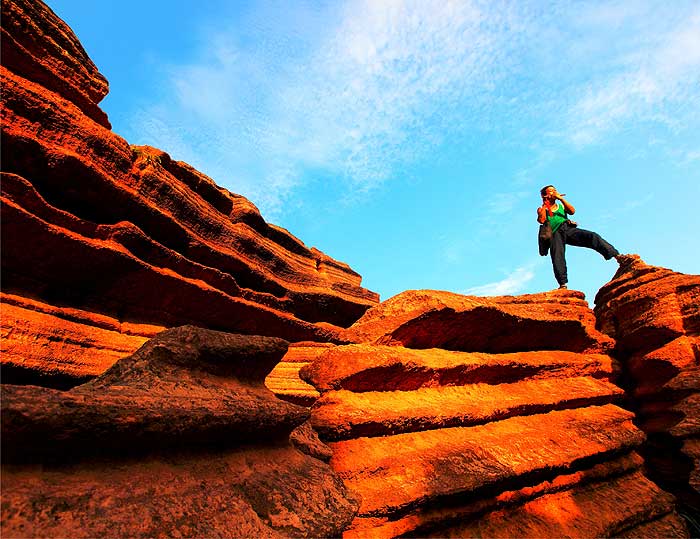 二、遙遠的地質年代 位于紅石林國家地質公園內的寒武紀地質剖面發(fā)育完整、巖相穩(wěn)定,古生物化石豐富,是我國寒武紀地層最好的典型地層剖面。這一典型地層剖面一旦經國際專門機構確定,將構成完整的寒武紀第二段國際標準地層剖面。 在紅石林的石頭上到處可以看見許多化石,它們千姿百態(tài)栩栩如生,這些化石的前生就是角石,又稱為“寶塔石”或“中華角石”。是研究海洋環(huán)境和劃分地層時代的標準化石之一,具有很高的科研、觀賞性和收藏價值,能給人無限的遐想……